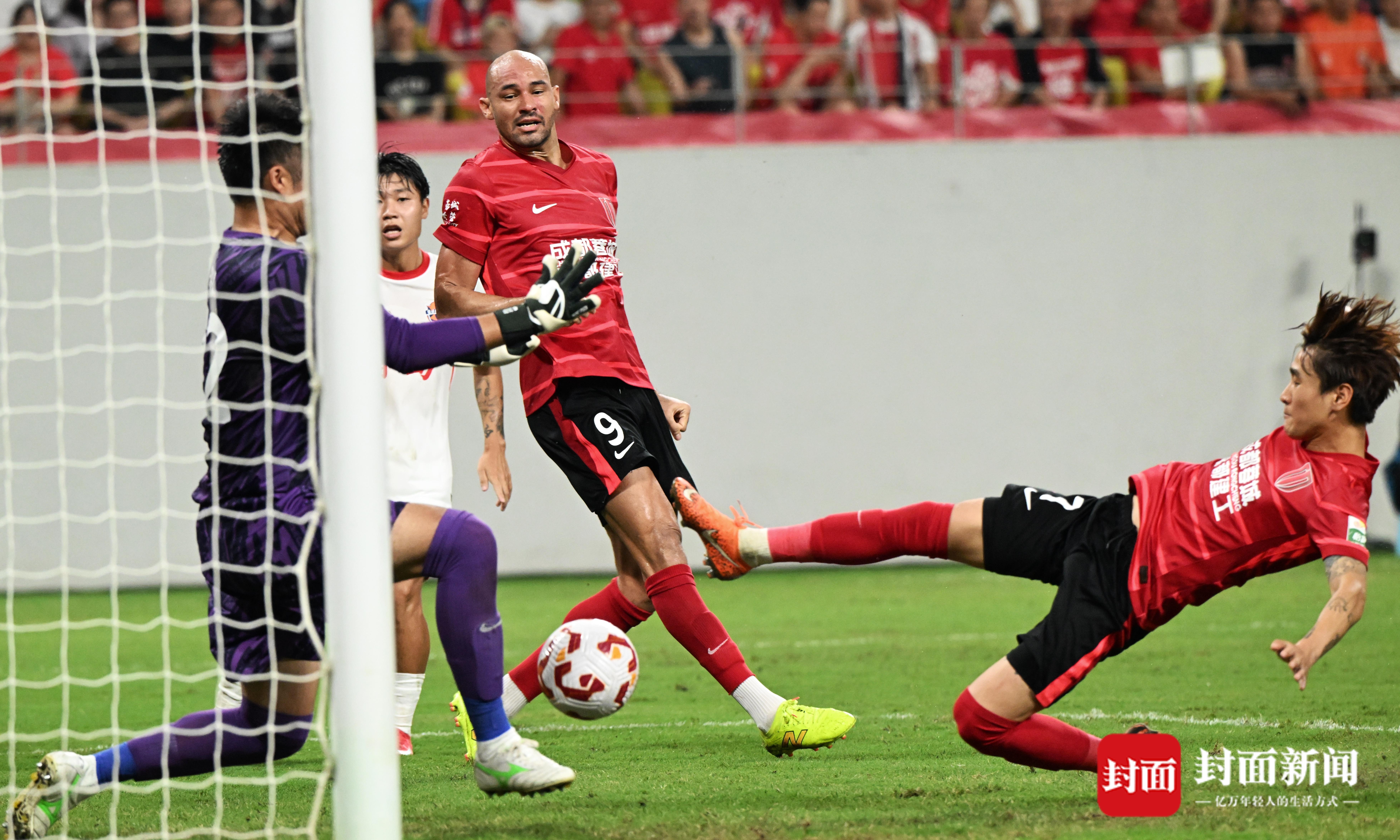 以非主力阵容出战,即使面对联赛排名倒数第二的保级队青岛海牛,蓉城也打得颇为狼狈,上半场比赛几乎没有像样的进攻,一直被对手压在半场进攻,要不是门将蹇韬表现神勇,多次上演精彩扑救,蓉城球门早已被洞穿。